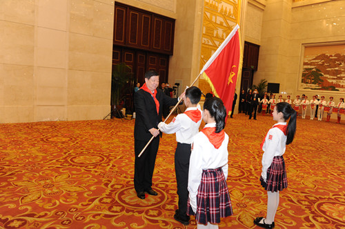 大会开幕前,省委书记姜异康,省委副书记、省长郭树清,省政协主席刘伟,省委副书记龚正亲切接见与会代表。姜异康向省第七次少代会代表授中国少年先锋队队旗。